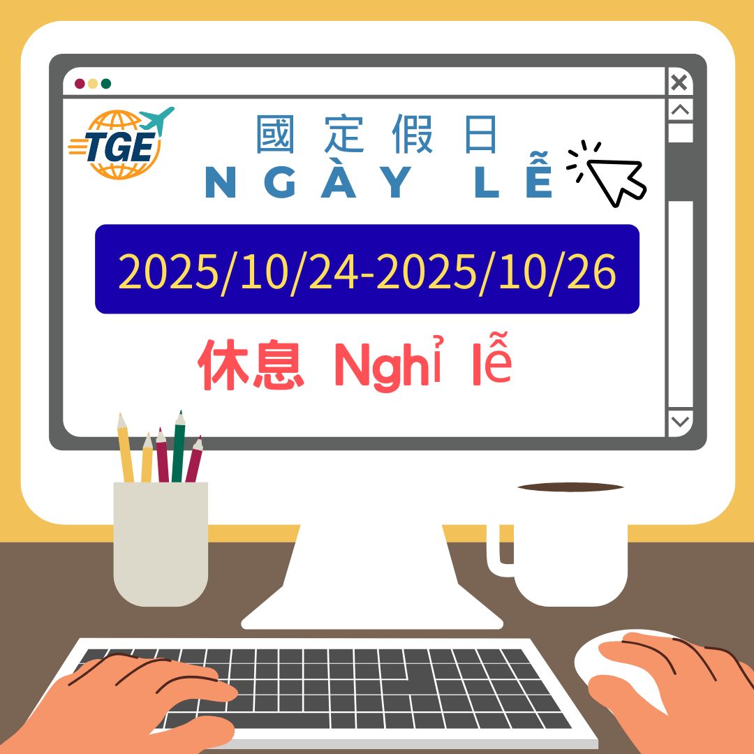 2025/10/24~ 2025/10/26 光復節放假 TGE祝您們順心